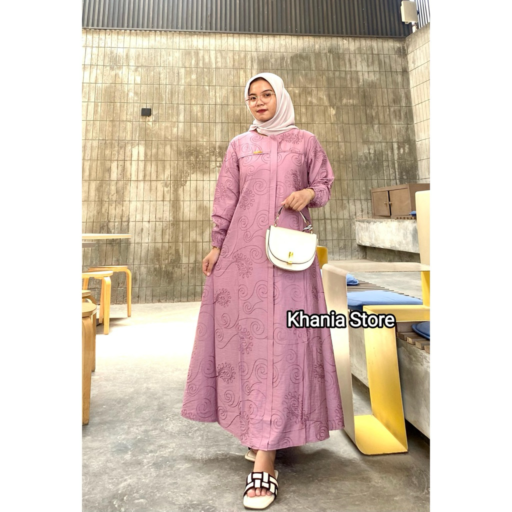 Mecca DressGamis Midi Pololinen BordirGamis Busui Resleting depanGamis Lebaran 2025 Simpel Elegan