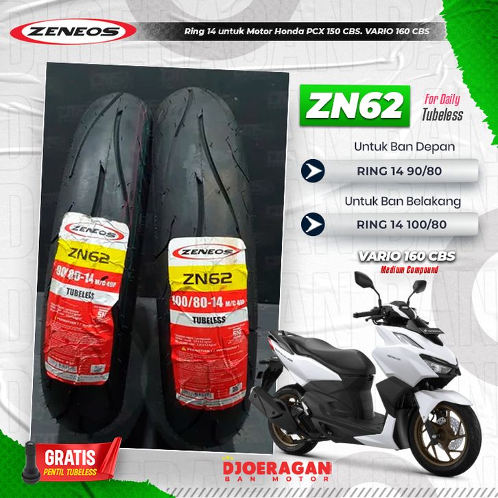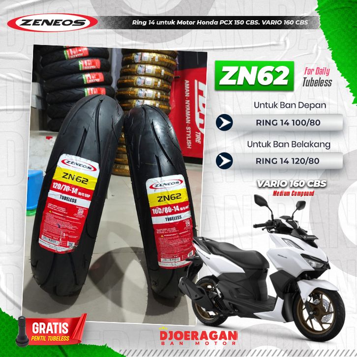Sepasang / Satuan Ban Motor Zeneos Zn62 Tubeless Depan Belakang Ban Zeneos Ring 14 17 Zn62 Ban Motor Ring 14 Ring 17