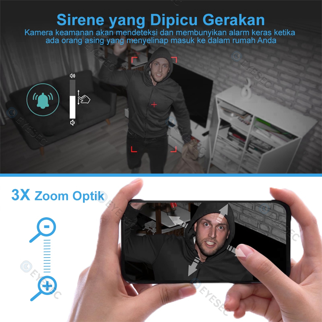 CCTV Indoor 3MP 130° Wide-Angle Wireless Wifi Smart IP Camera Indoor 3X Zoom Optik Support Tuya APP +Micro SD