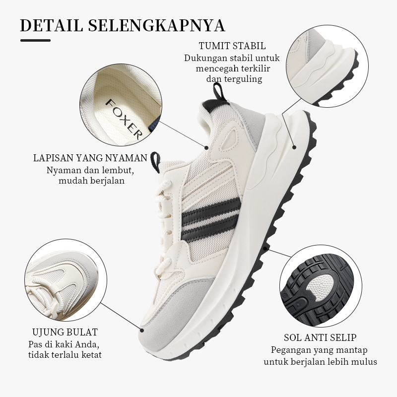 FOXER Sepatu Ayah Wanita Bersol Tebal Sepatu Kets Putih Sepatu Kets Kasual