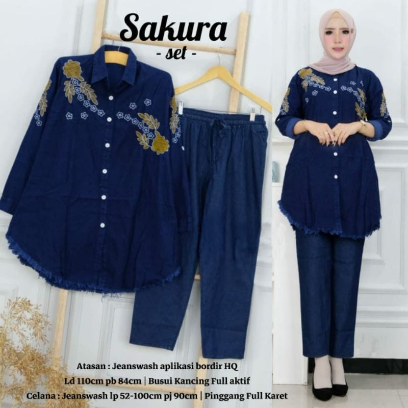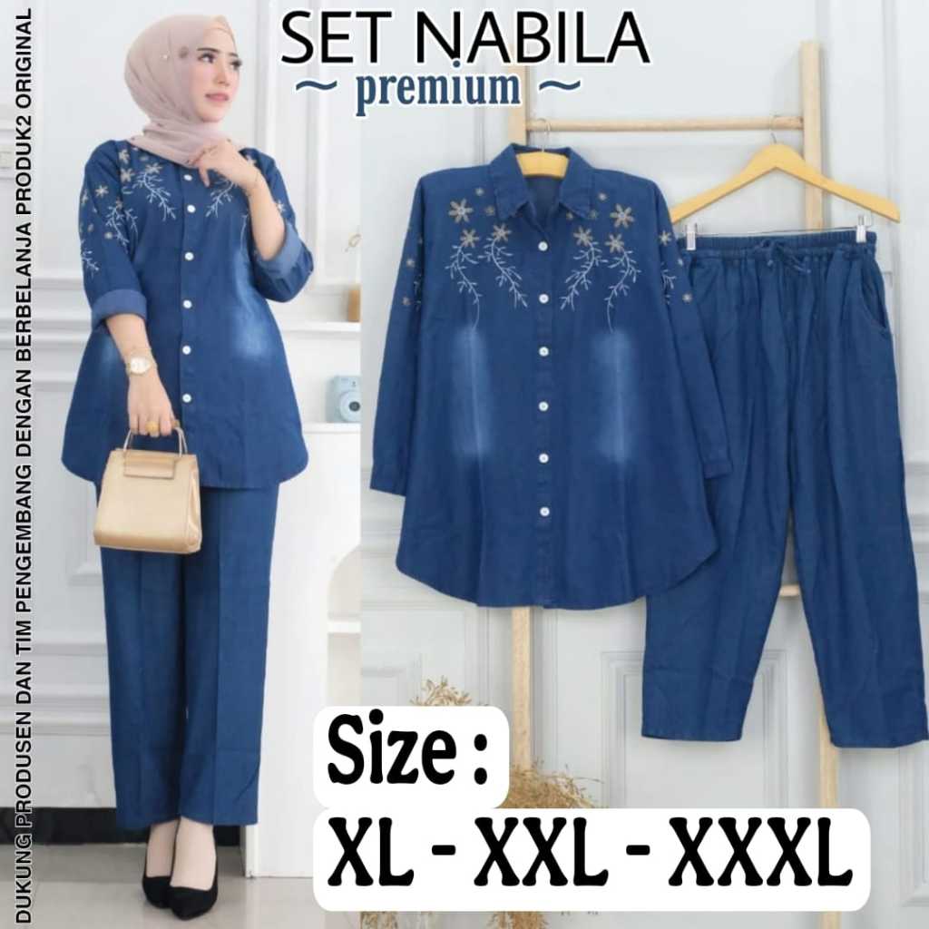 Oneset Wanita Jeans Wash Premium Pakaian Wanita Jeans Termurah Setelan BB 50 100 KG Jumbo Bordir