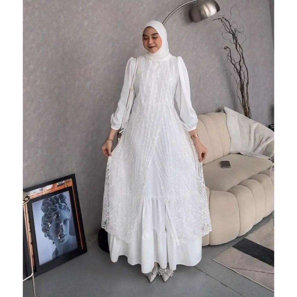 Gamis Dress Brukat Olivia Velvet Seragam Kondangan Pesta Simple Elegan Mewah Terbaru Kekinian Viral