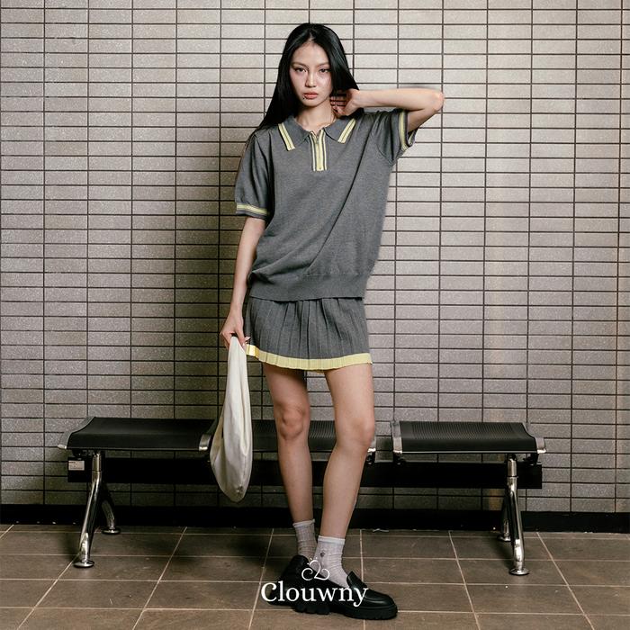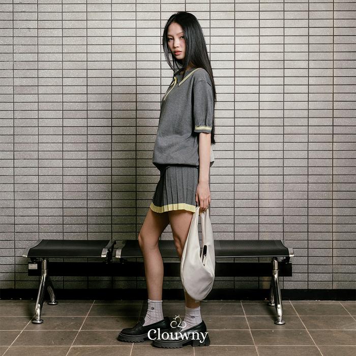 Clouwny Vermont Zipper Knit Set Setelan Rok Wanita Simple Classy Premium Knit Fit To Xxl Baju Atasan Pendek - Grey