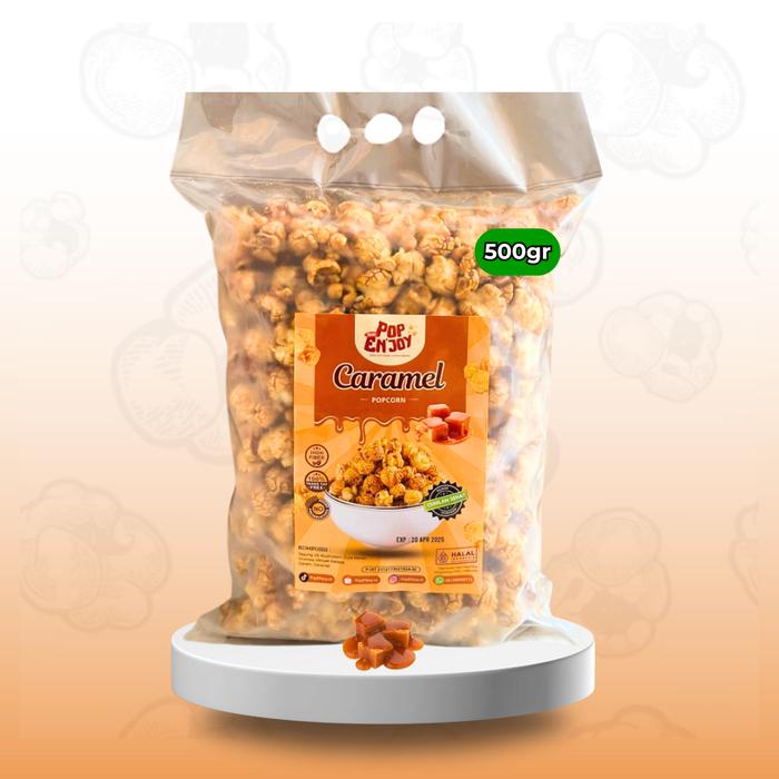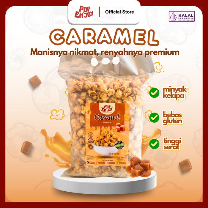 Popenjoy - [Baru] Popcorn Caramel 500Gr | Makanan Manis Crispy Camilan Popkron Snack Jagung Cemilan Food Instan Bumbu Kr