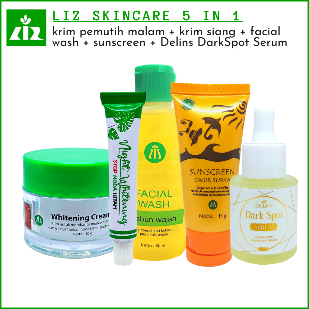 Liz Skincare Day & Night Whitening Cream - Krim Pemutih Malam (KPM) 10gr - Krim Pemutih Pagi/Siang - Delins Serum Dark S