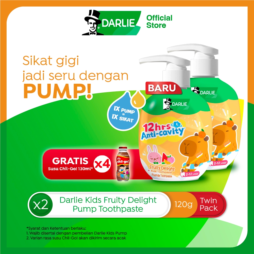 DARLIE Toothpaste Kids Fruity Delight Pump 120 gr 2 Pcs Twin Pack Pasta Gigi Anak