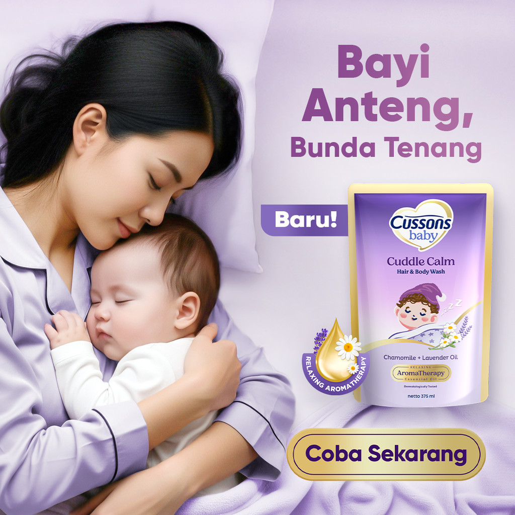 Cussons Baby Cuddle Calm Hair & Body Wash 375ml X2 Chamomile & Lavender Oil, Sabun Bayi 2in1 Bantu Bayi Rileks & Anteng