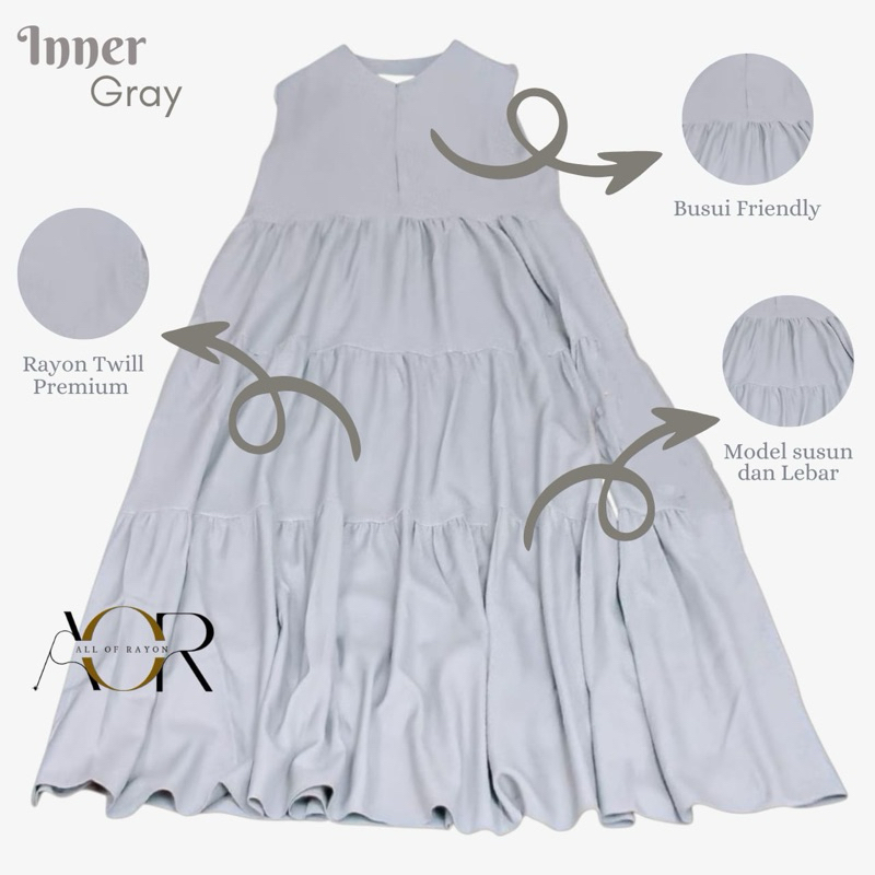 AOR Inner Dress Rampel Tanpa Lengan Rayon Twill Premium Daily Dress Susun Rampel Busui Friendly Maxi
