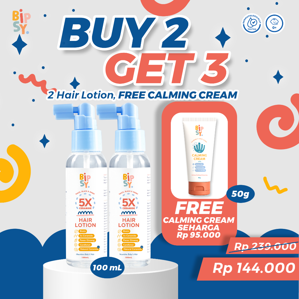 BIPSY BUY 2 GET 3 Hair Lotion 100mL 2 pcs + Calming Cream 50gr 1 pcs – BUNDLING – Rambut Tebal, Tidur Tenang