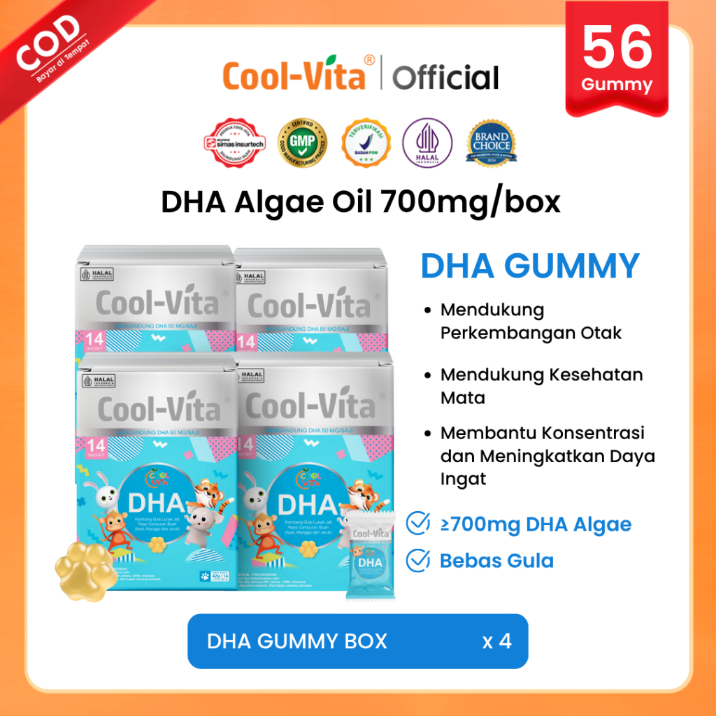Coolvita 4 Box DHA Gummy Rasa Apel, Mangga, dan Jeruk Untuk si Kecil yang Aktif Suplemen Kesehatan Otak dan Imun BESTSELLING
