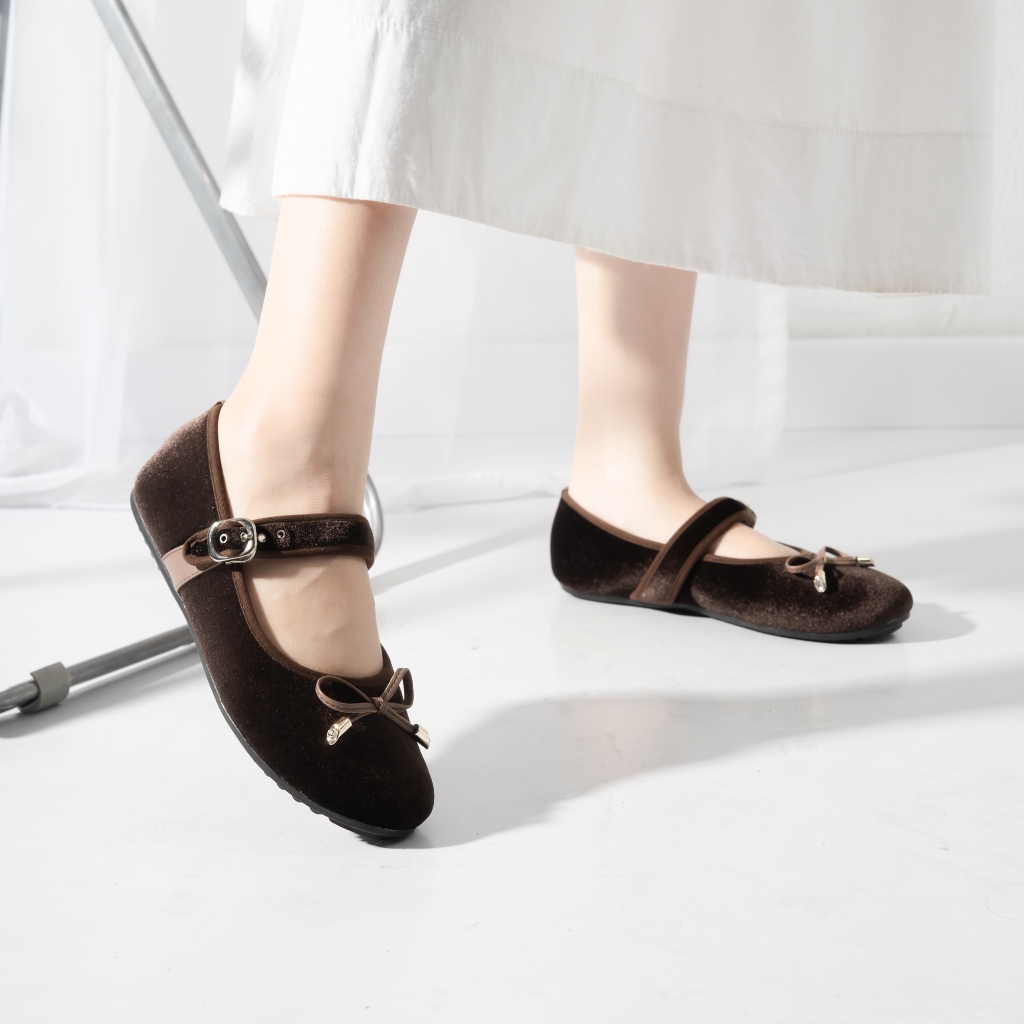 Elodie Flat Shoes Wanita Velvet Strap Pita Korean Style Navisa Basic Collection