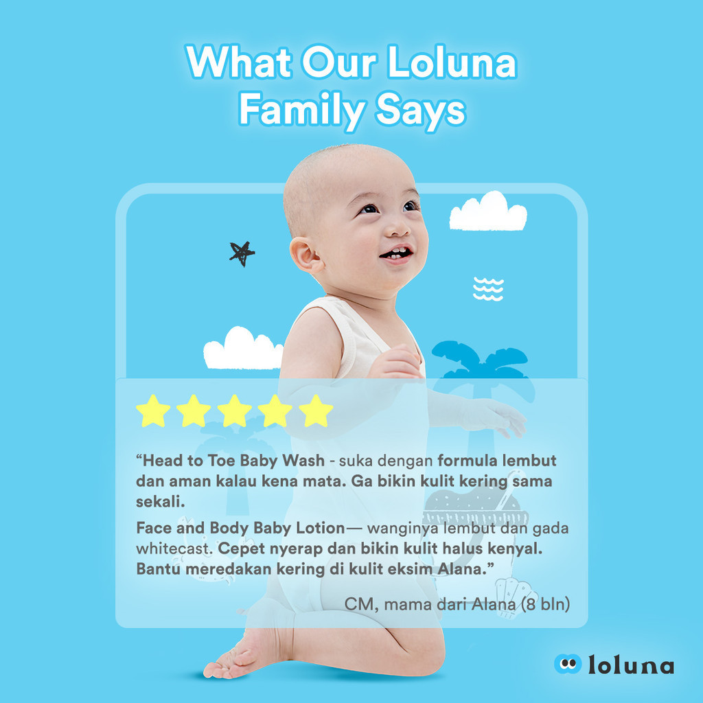 Loluna Head to Toe Wash 300ml + Face & Body Lotion 200mlSabun Sampo Lotion Perawatan Kulit Bayi Newborn dan Anak5x Ceramide
