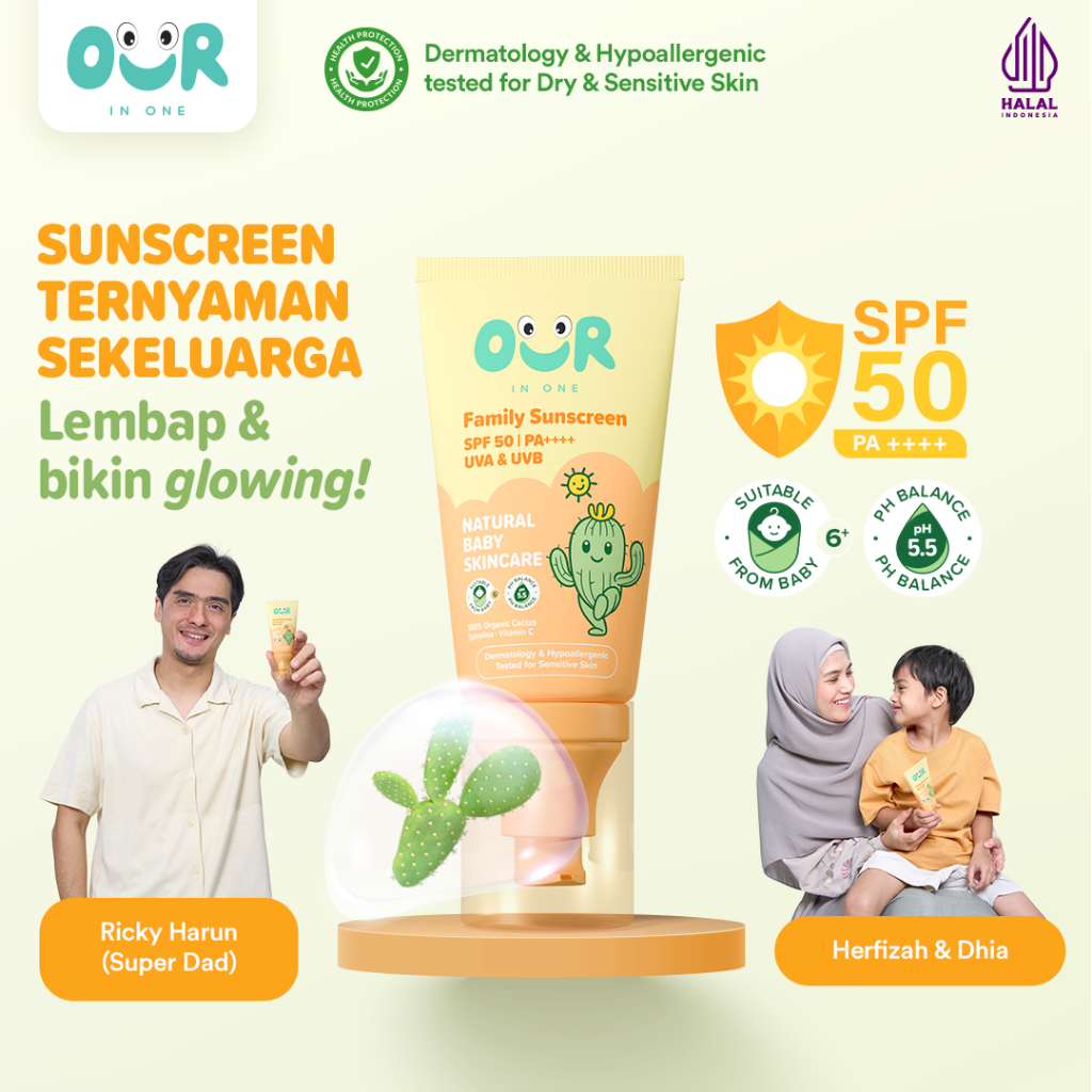 Our In One Family Sunscreen SPF50 PA++++ Barrier Expert Lembab GlowingSensitif & Bayi Anak Dewasa