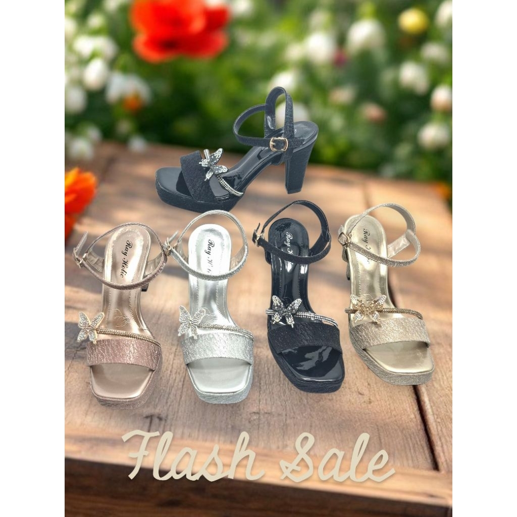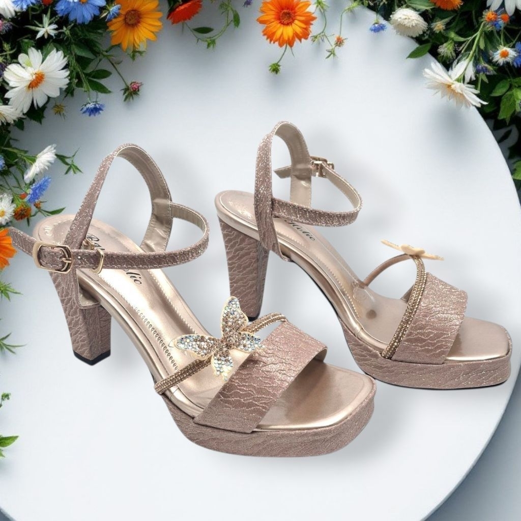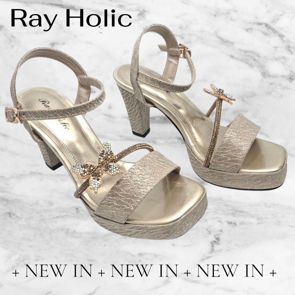 Sandal Tali Heels Mutiara Kupu-Kupu Kekinian Hak 9cm Rayholic 901