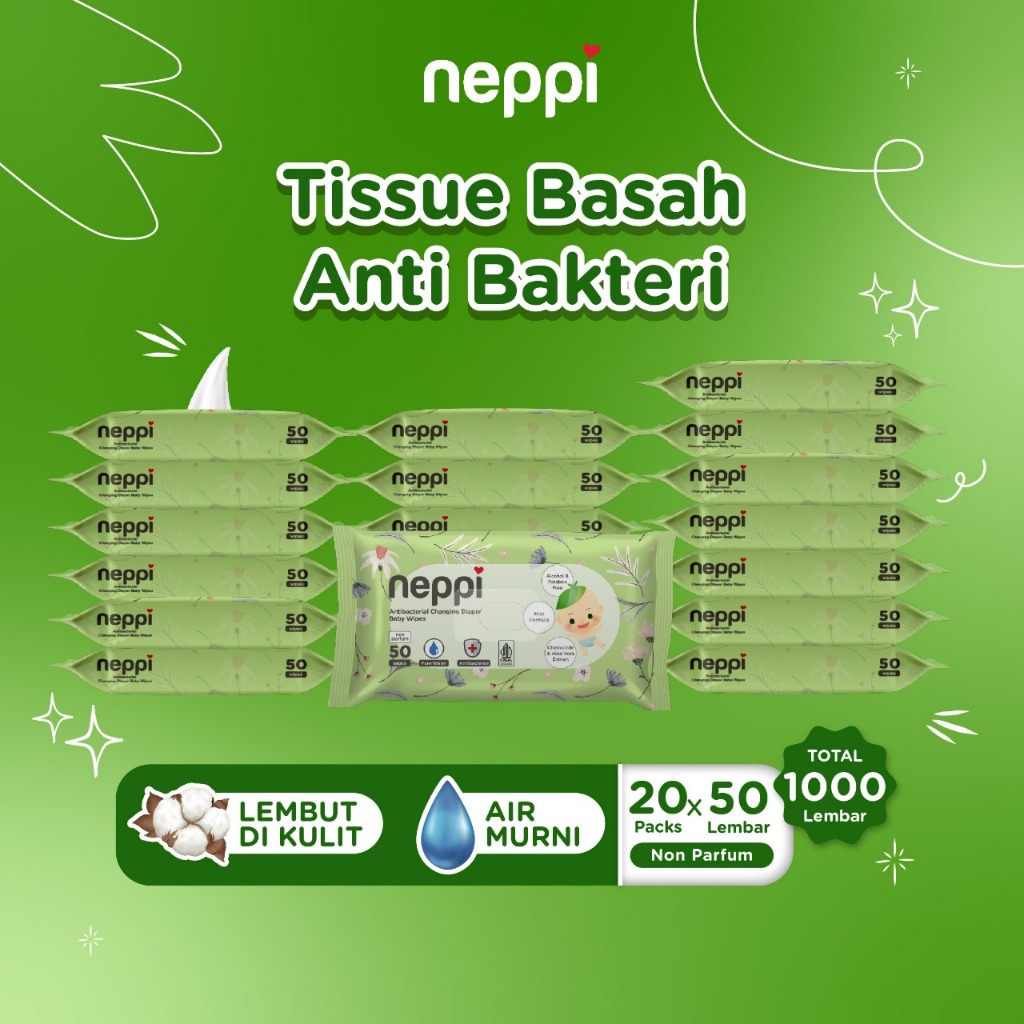 20 Pcs x 50 Lembar Neppi Tisu Tissue Basah Antibacterial Changing diapers Wipes Non Parfum