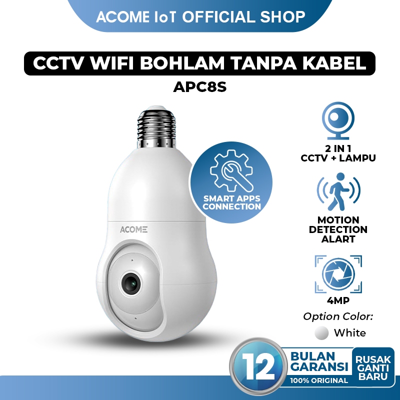 ACOME IOT Camera CCTV APC8S | CCTV Lampu | Full HD 1440P | 4MP | Rotasi 360° | Audio 2 Arah | Tetap Terang dalam Mode Ma