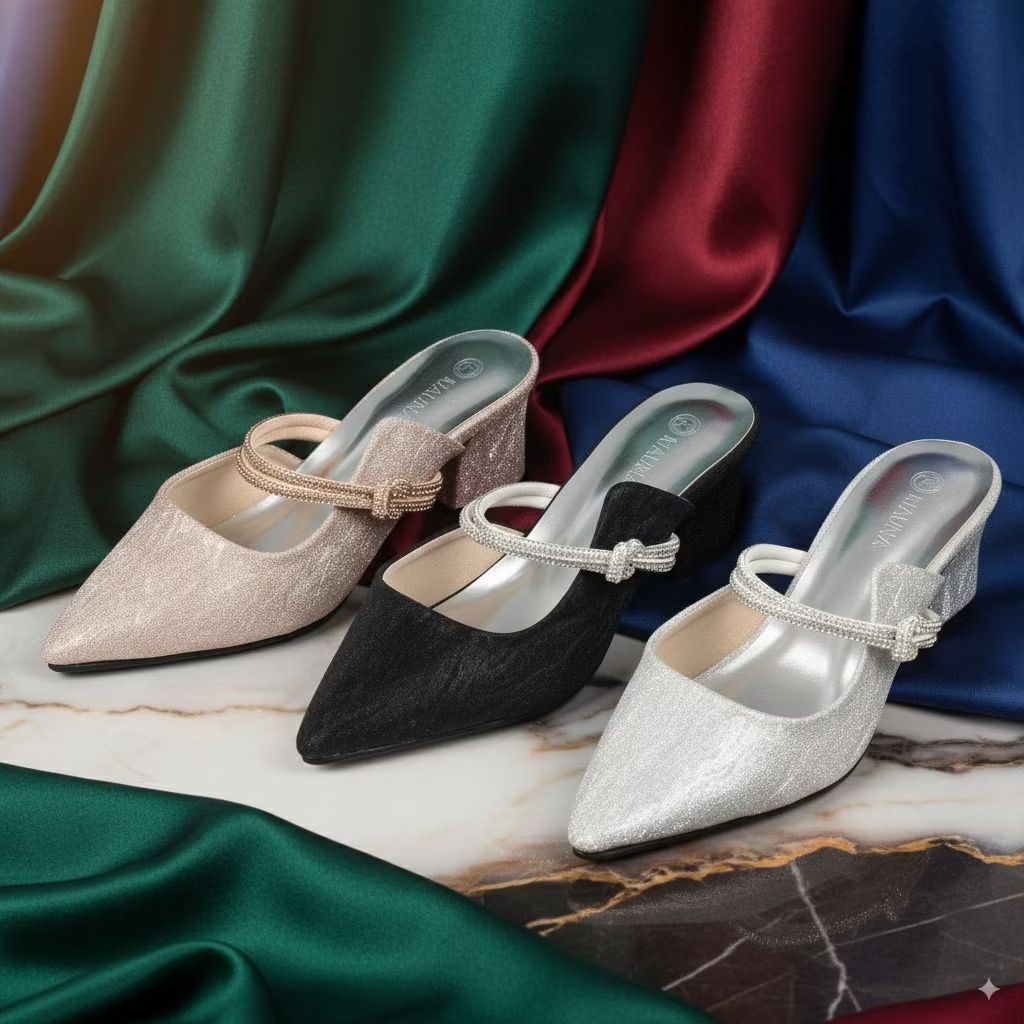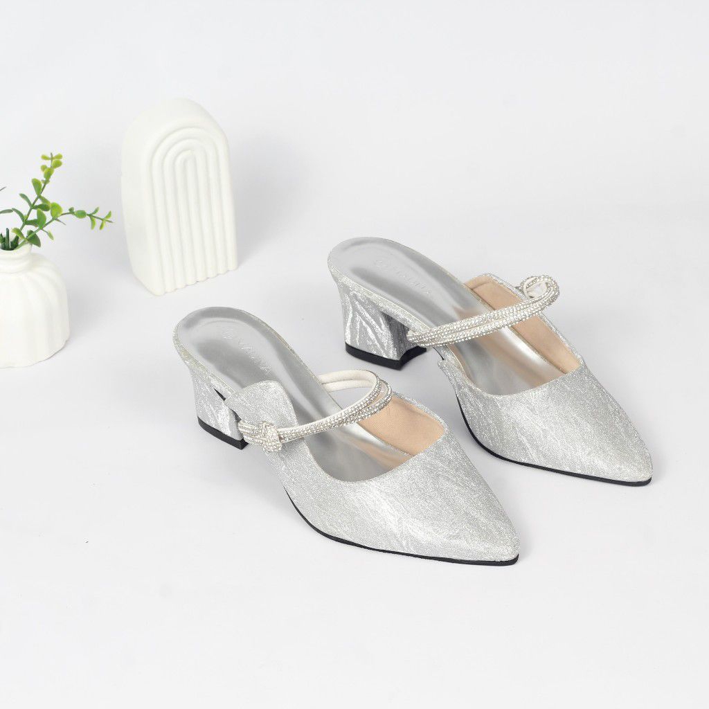 CLARA Heels Hak 5 Cm - Sandal Mules Pesta - Wisuda - Wedding. Nyaman & Elegan Dg Sol Karet Anti Slip