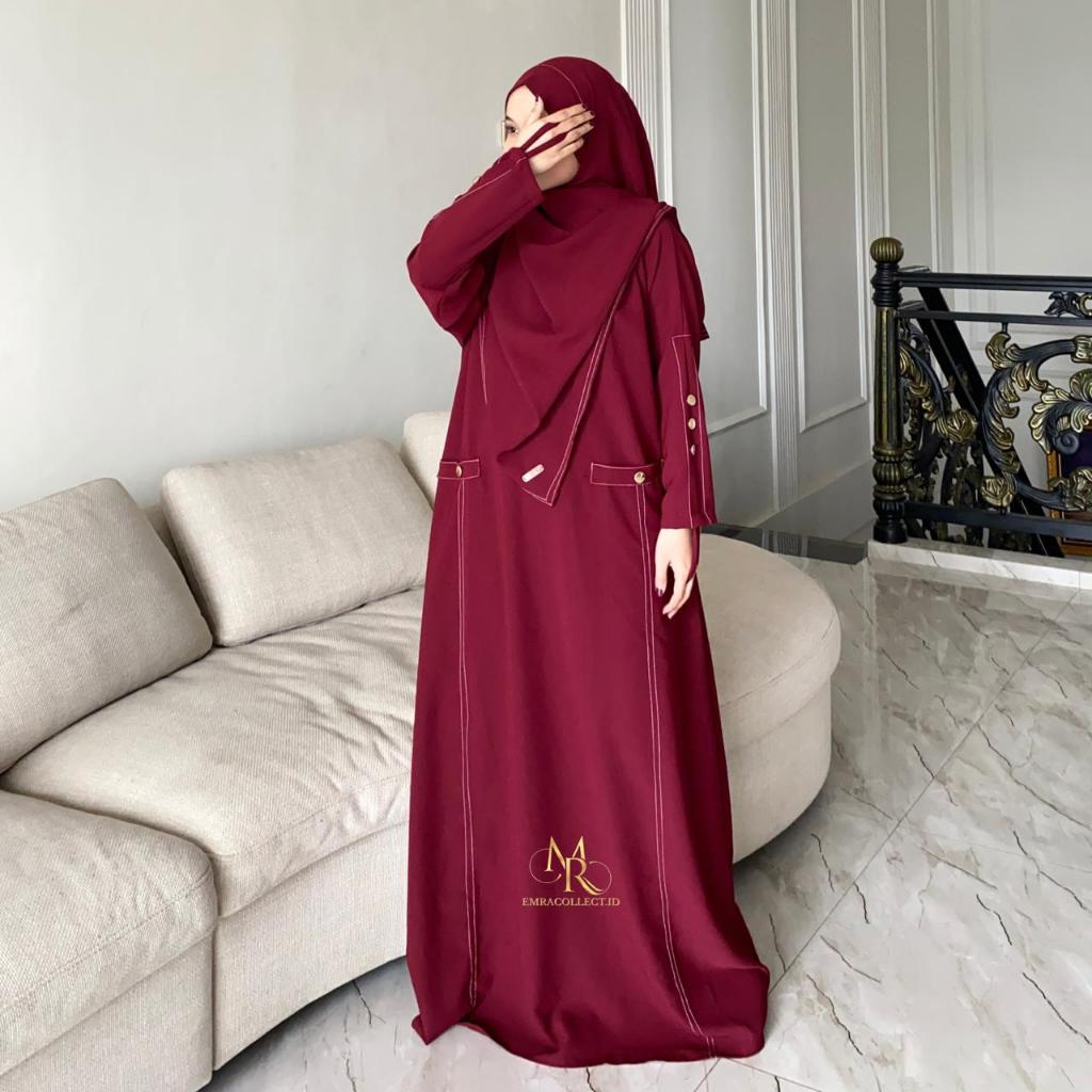 Abaya Raudha Series Pashmina Instan Bandana Set Baju Syar'i Umroh Gamis Wanita Anti UV Premium EMRA