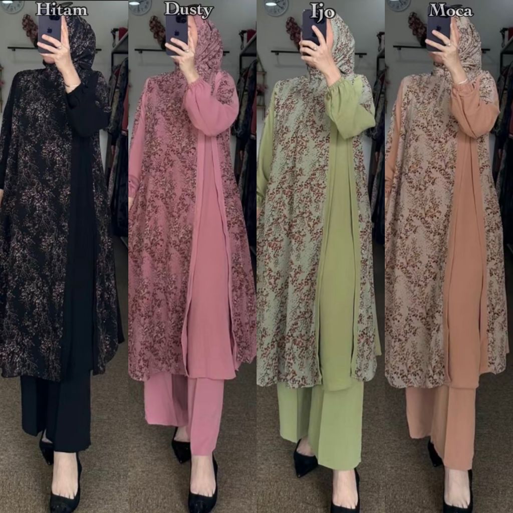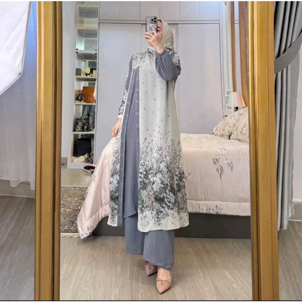 Setelan long tunik set hijab busui friedly motif bunga Kekinian model baru mewah Tibrana Tama Gradasi Melati Safira Aiswa