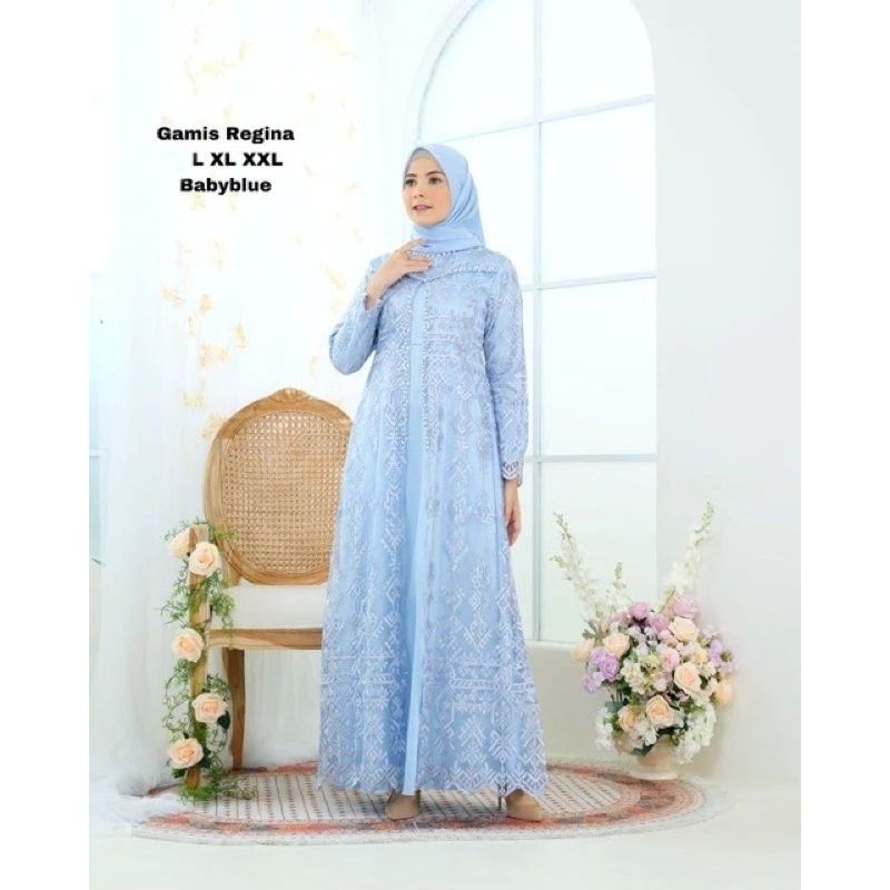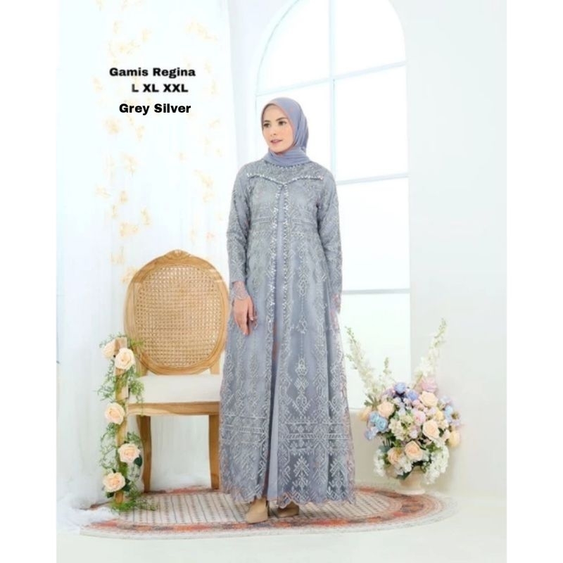 Regina Dress Lebaran Kondangan L XL XXL Premium Jumbo Mewah Gamis Muslim Produk Terbaru MIlo Taro Rose9OLD Hitam Sage
