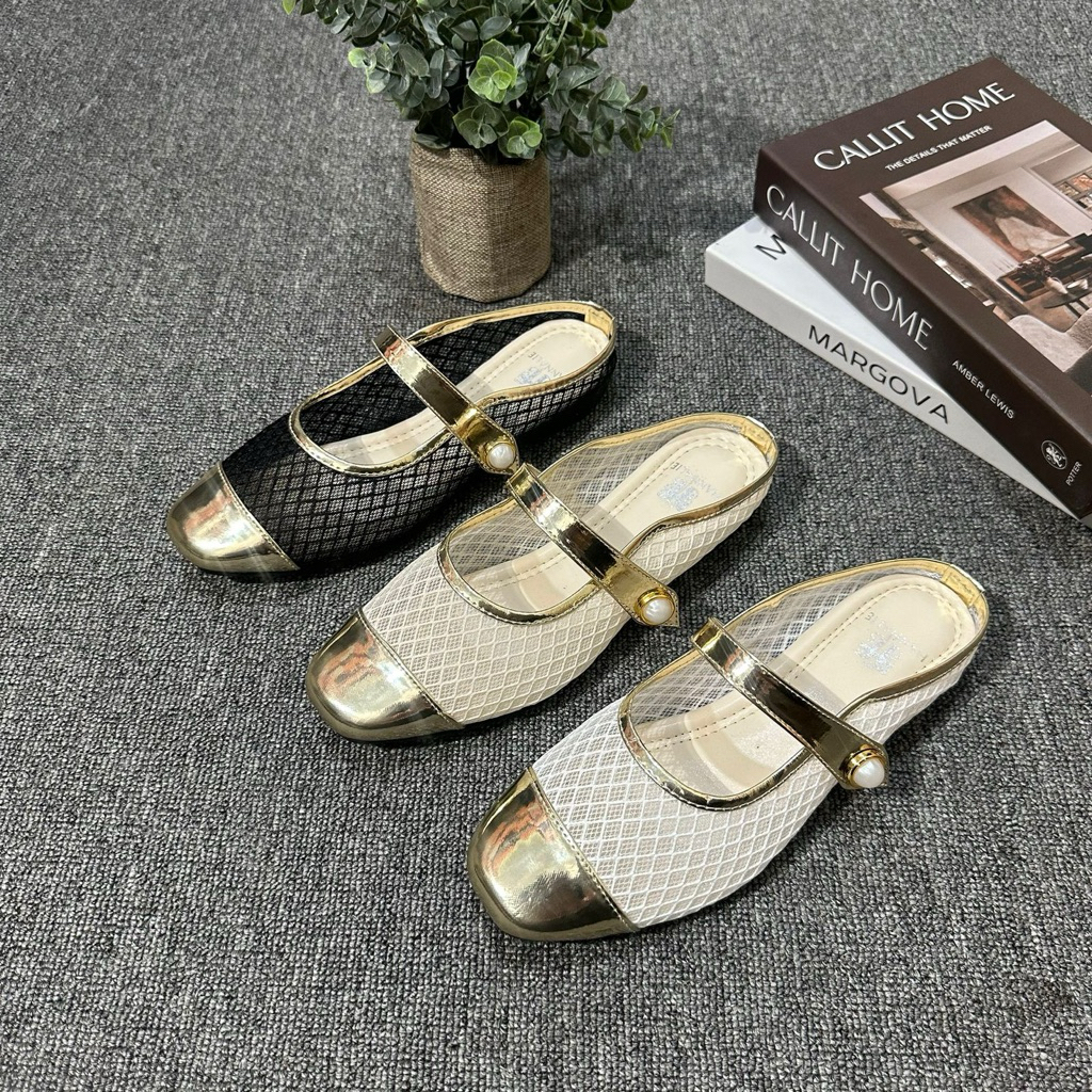 Sepatu Flat Wanita Bustong Model Terbaru Bahan Brukat Jaring