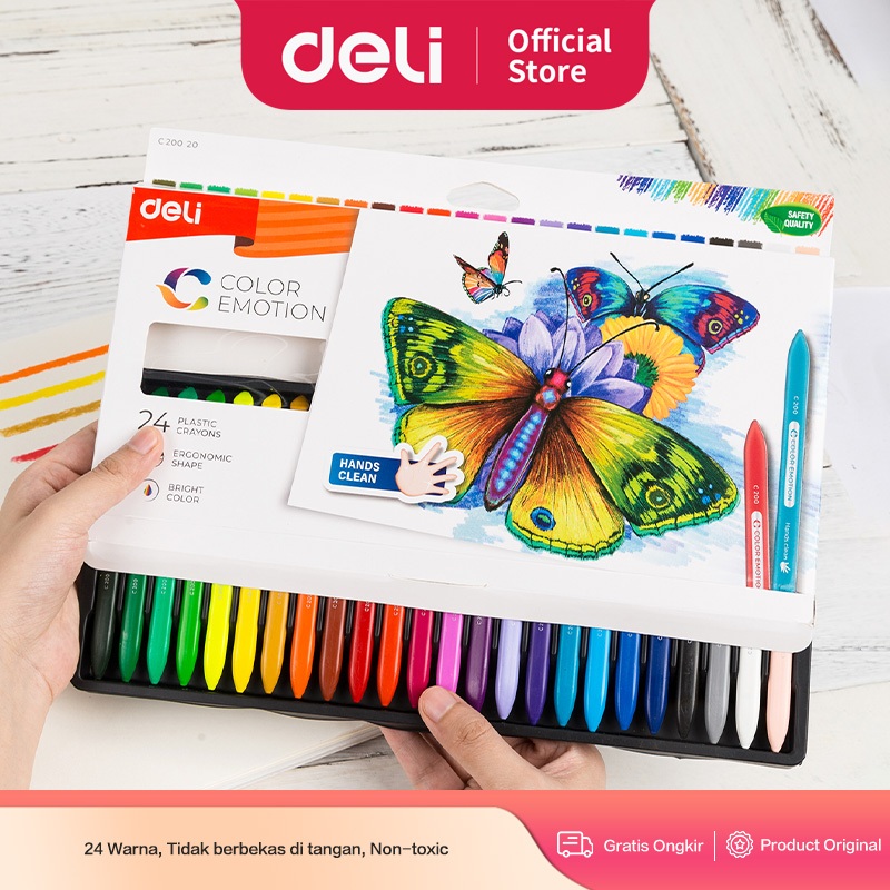 Deli Krayon Sekolah 24 Warna Cerah Bentuk segitiga ergonomis tidak beracun EC20020
