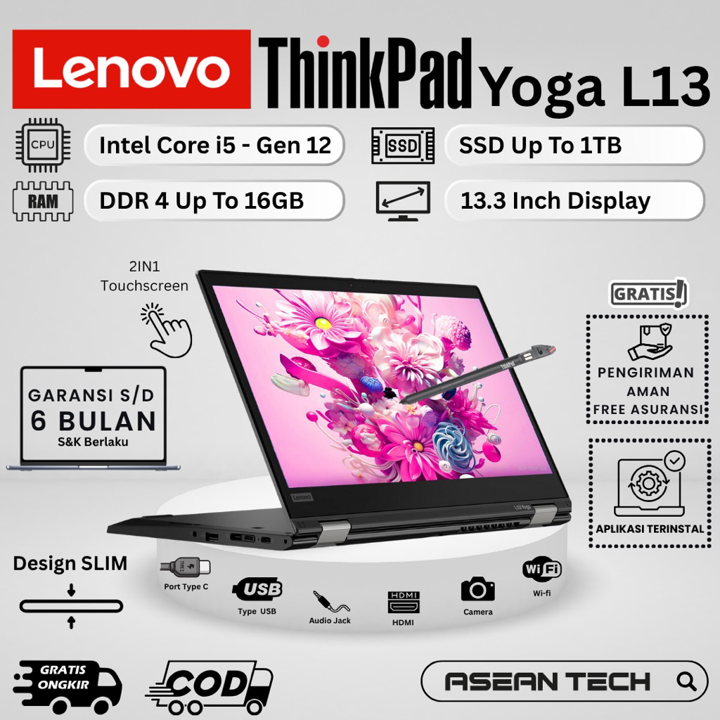 Laptop 2In1 Lenovo Thinkpad Yoga L13 G3 Core I5 - Gen 12 Ram 16Gb Ssd 1Tb - Second Garansi | Flip