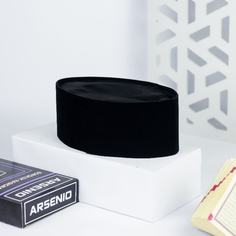 Peci Kopiah Songkok Hitam Polos AC Bahan BLUSDRU Tinggi 9 Anak Pria Dan Dewasa Kopeah Murah Peci Dewasa