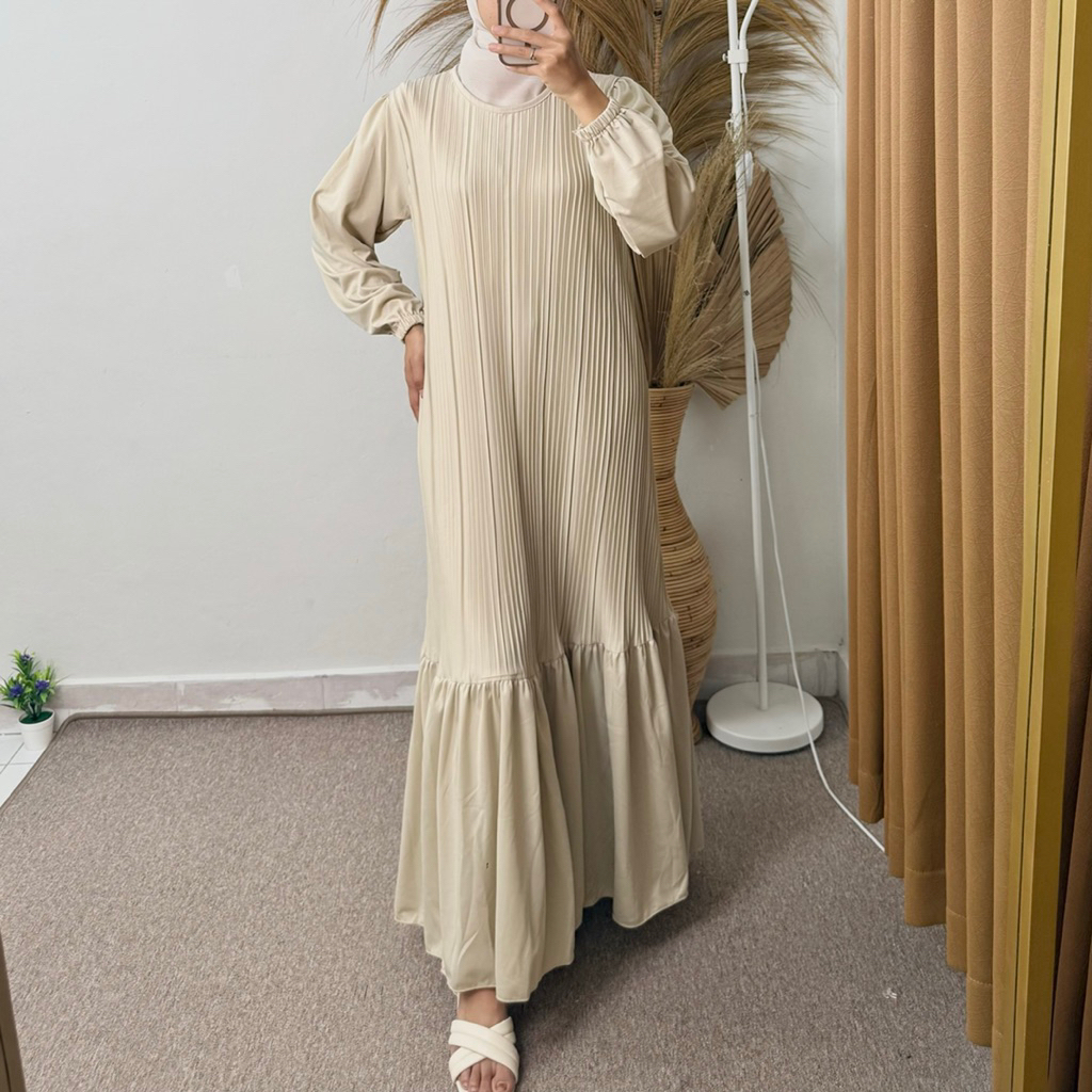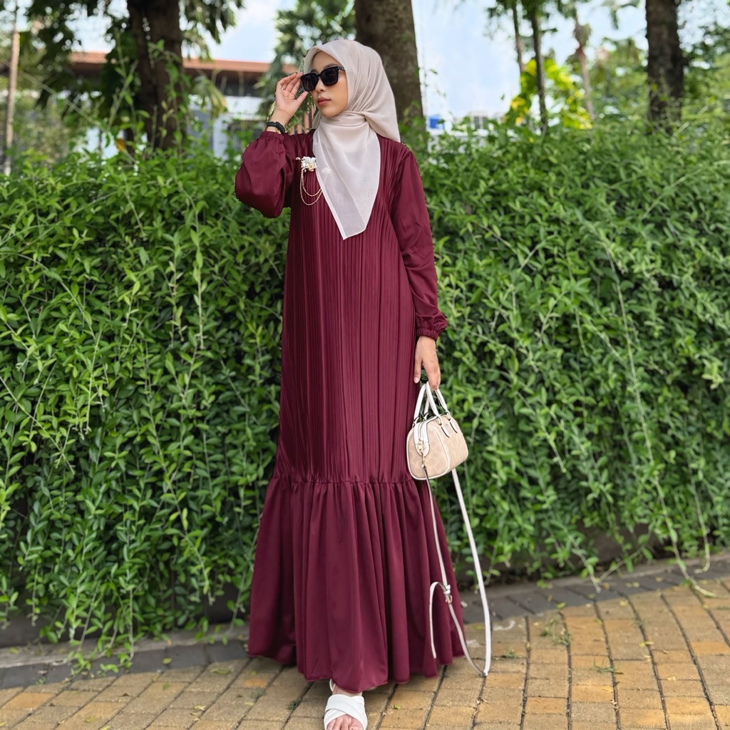 Aluna Maxi Pleats Gamis Plisket Premium Dress Plisket Terbaru 2025Gamis Kondangan Simple Elegan