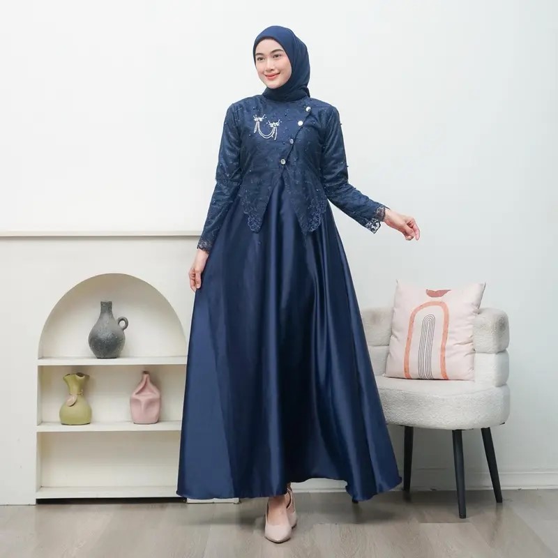 Dress Sahara Brokat Terbaru Gamis Lebaran Elegan Mewah Muslimah Modern Bahan Premium Long Dress Kondangan