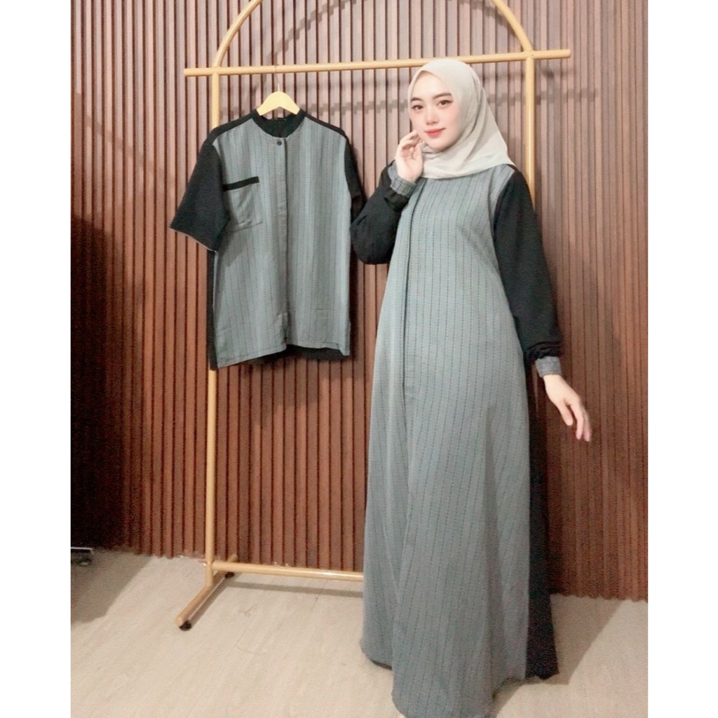Gamis Couple Lebaran 2026 Model Simple Kekinian Bahan Viscose Jaquard Mix Sabrina Lembut Adem Jatuh Dress Muslim Set Koko Terbaru