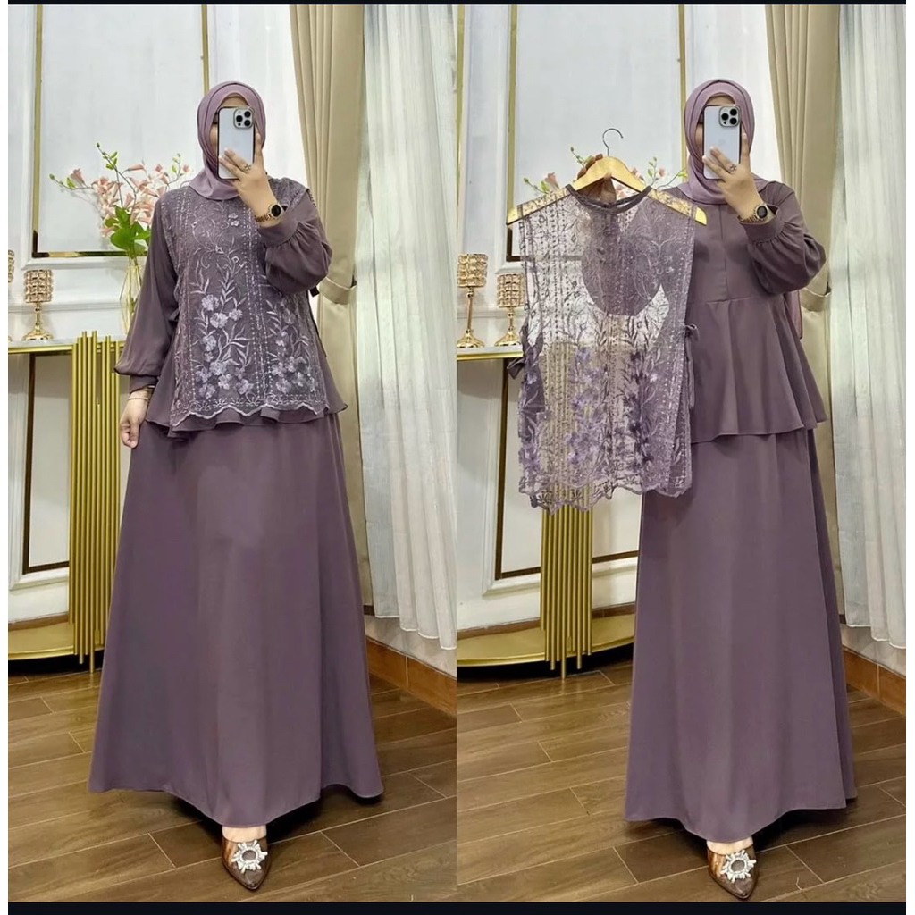 Gamis lebaran 2026 ceruty mix brukat NAURA dressgamis jumbo M L XL XXL viralgaun pesta pernikahan kondangan
