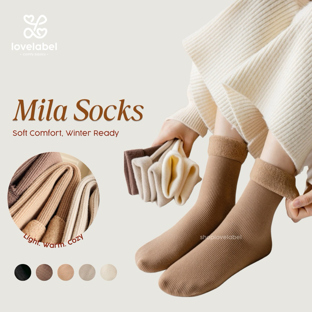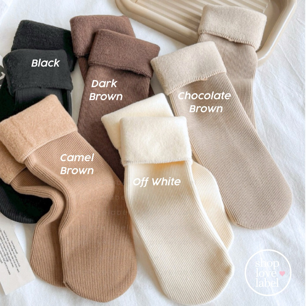 Shoplovelabel Mila Fleece Thermal Socks - Kaos Kaki Ribbed Knit Tipis Lembut Hangat Travel Spring Autumn
