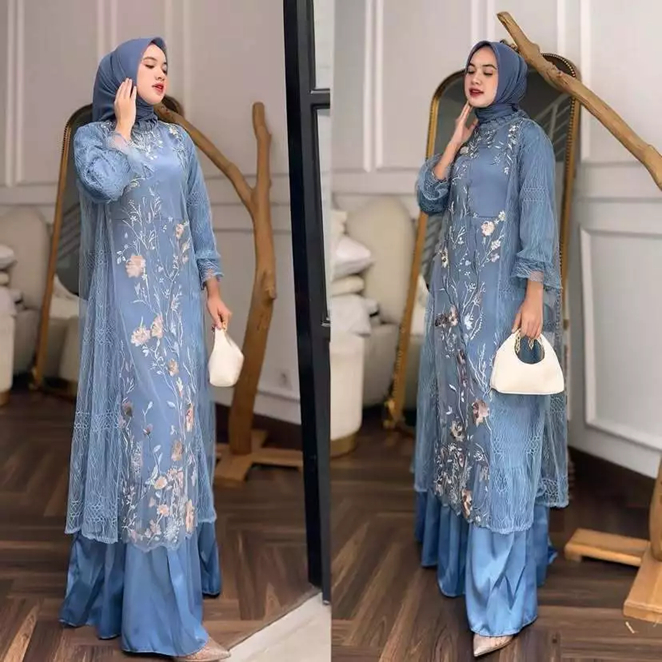 Lebaran Series Gamis Brokat Wanita Waisya Dress Brukat Cantili Gardenia Baju Pesta Kondangan