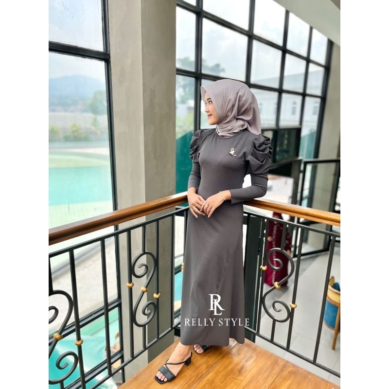 Long Dress Muslim Elegan Kondangan – Gamis Pesta Wanita Modern Lengan Balon by Relly Style