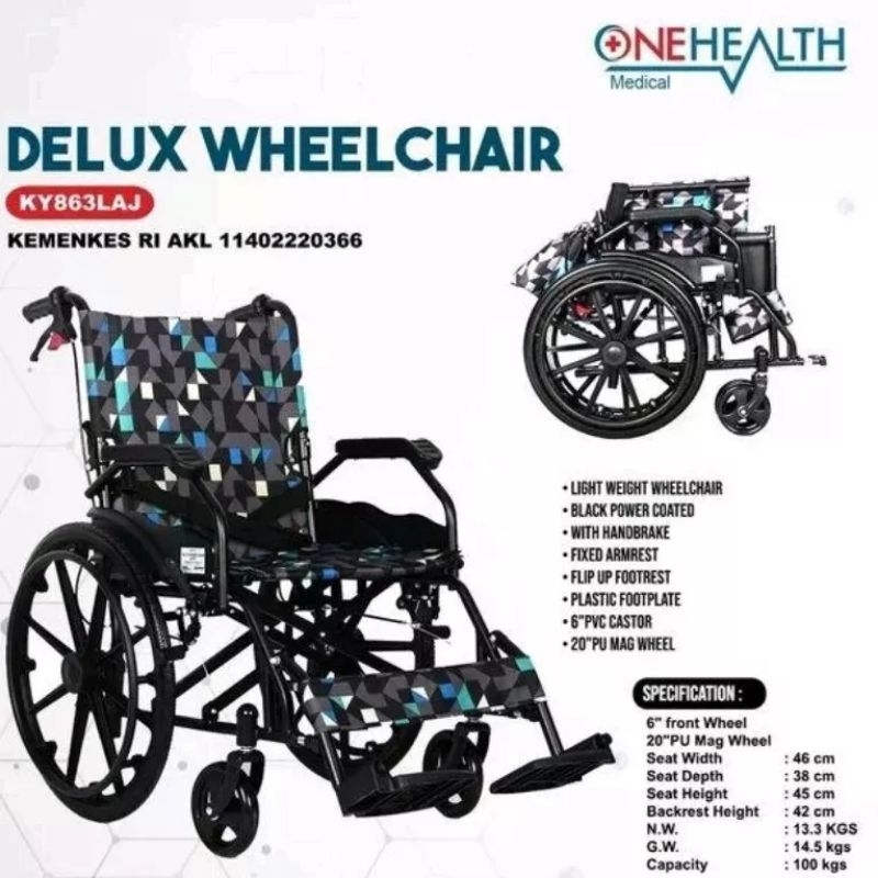 Kursi Roda Onehealth KY 863 Steel Wheelchair Velg Racing - Kursi Roda Travel