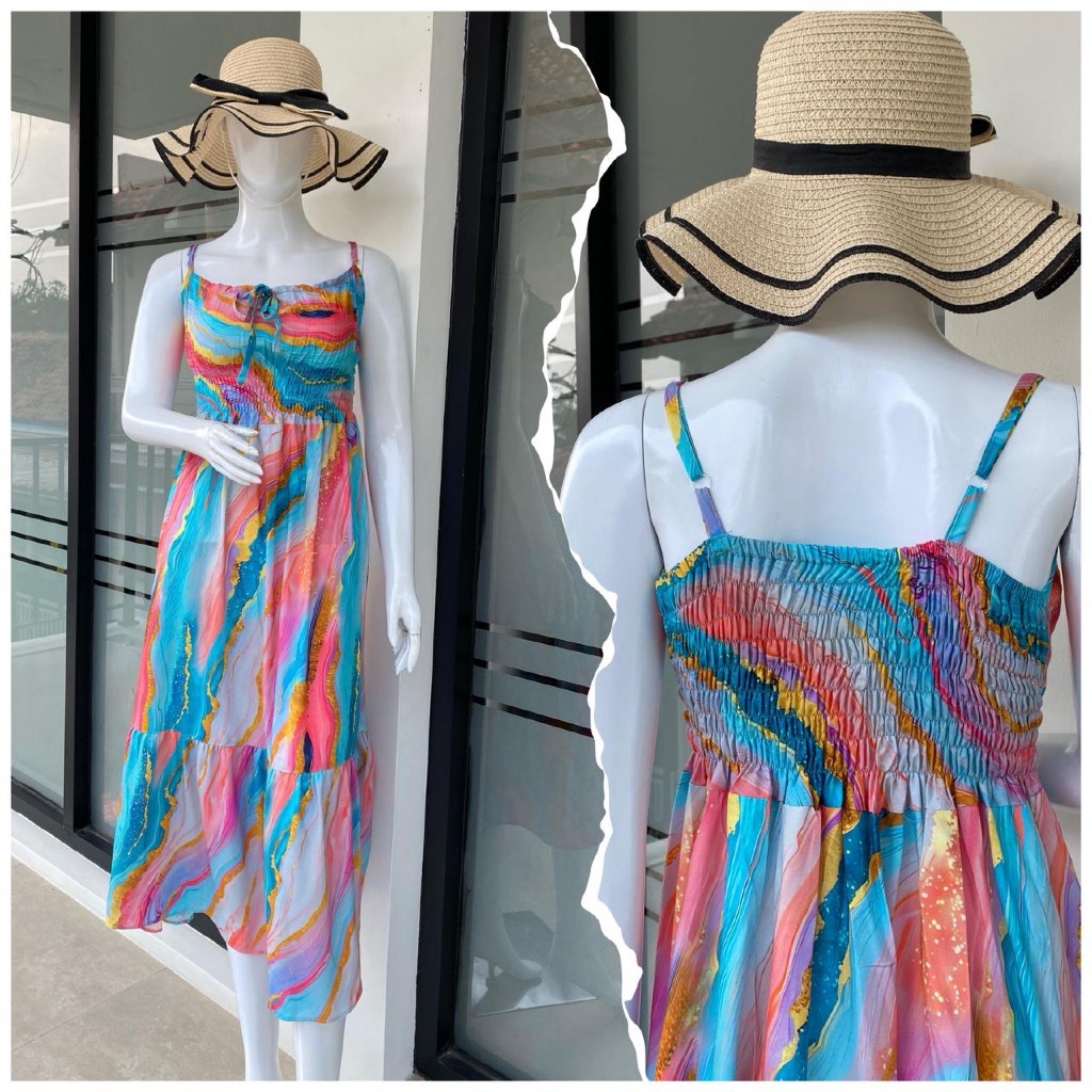 Lulu Dress Rayon Motif Cantik Tanpa Lengan Busui Friendly