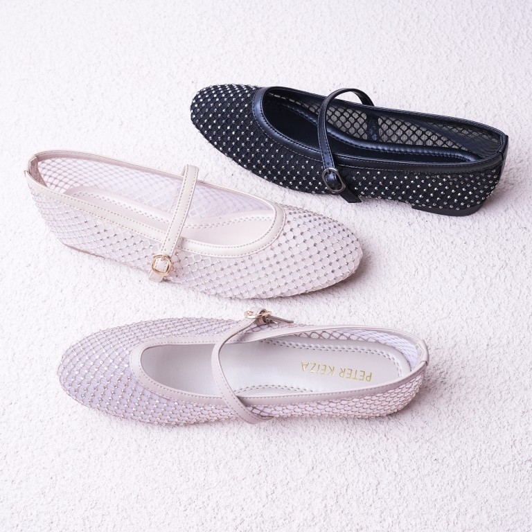 Peter Keiza Flatshoes Wanita Jaring Korean Style dengan Tali Tengah ZC03-01