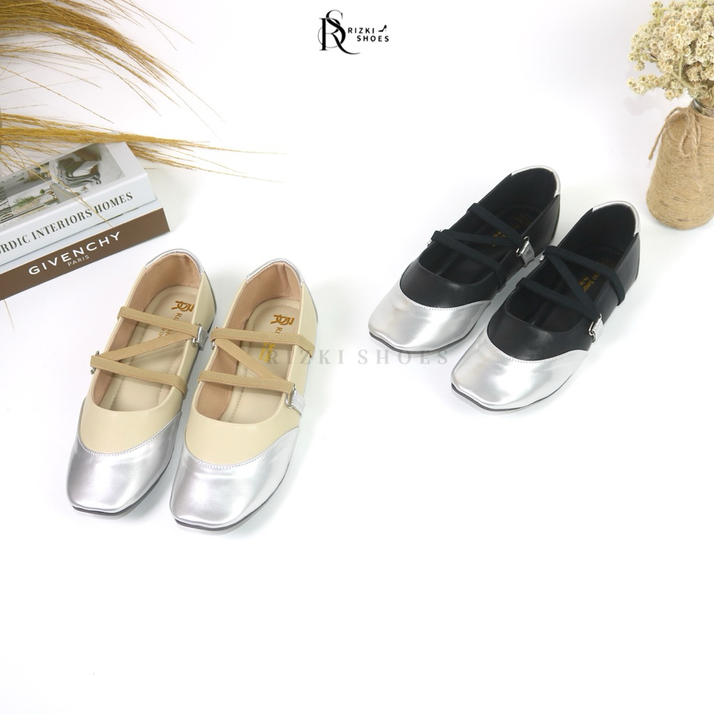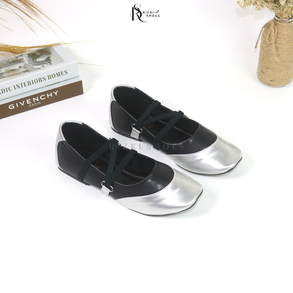 Flatshoes MILEN Wanita Sepatu Casual / Sepatu Kerja / Sepatu Kekinian - Sepatu Model Slip On Karet Kombinasi
