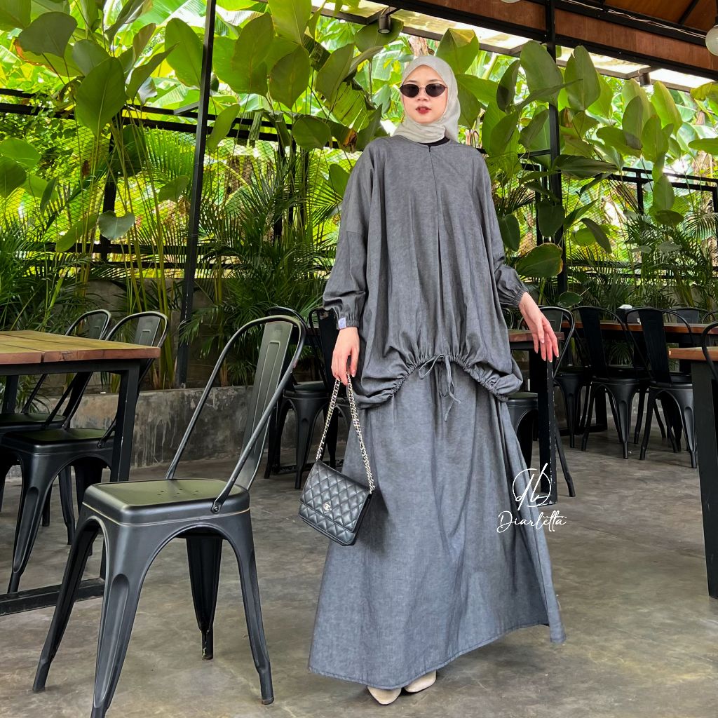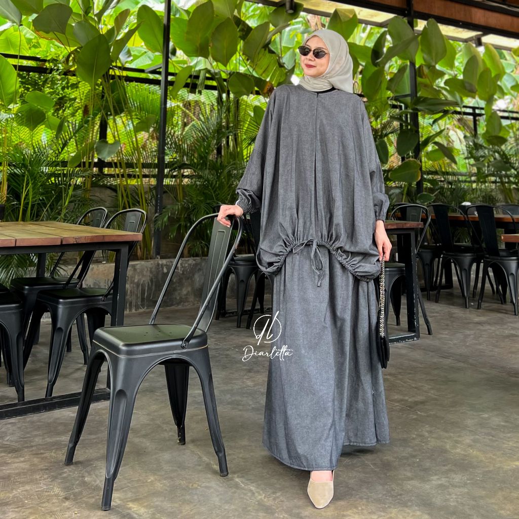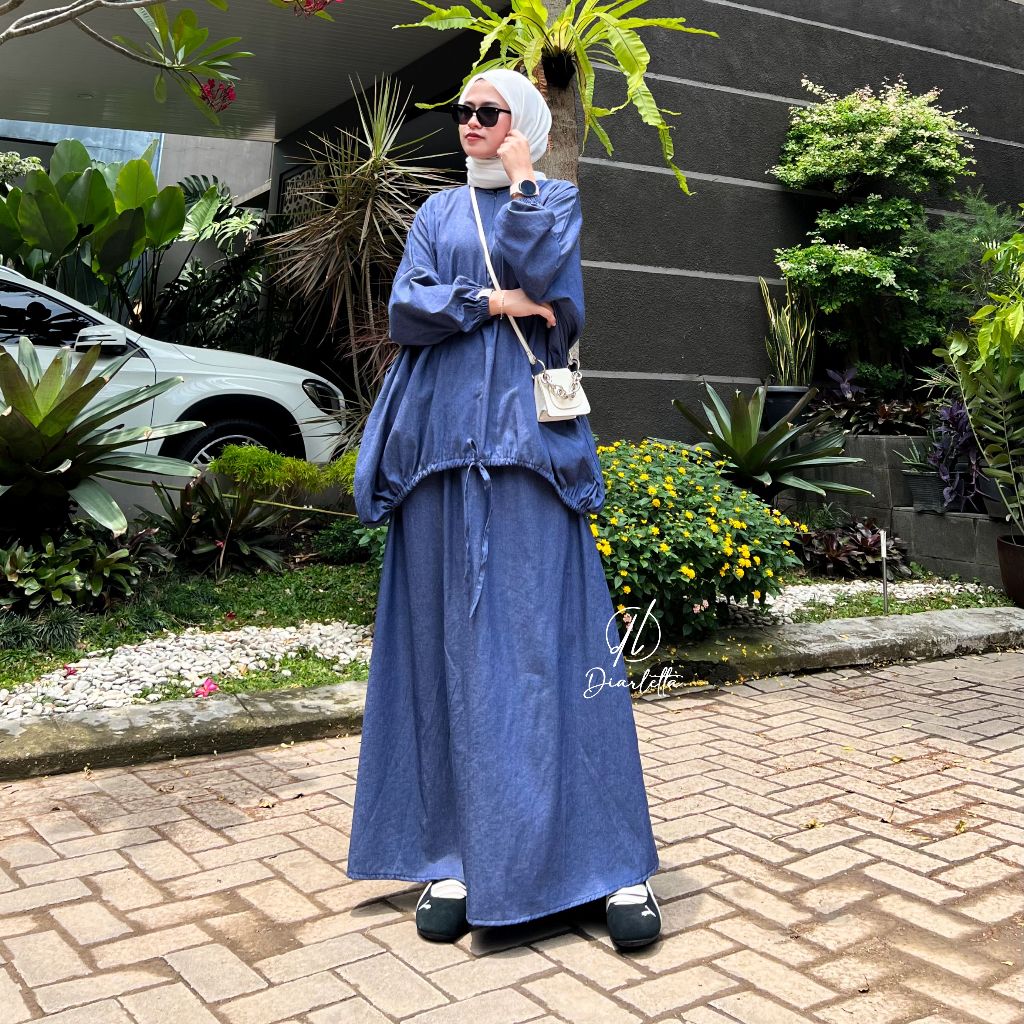 Willow Set Rok 2in1 Semi Batwing Balloon Busui Friendly Soft Jeans Rok ALine Umbrella by Diarletta