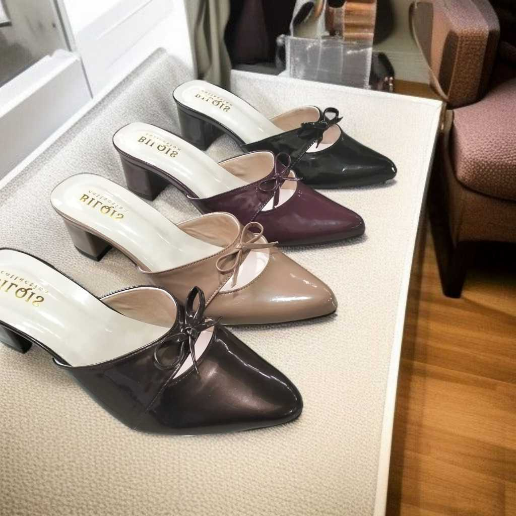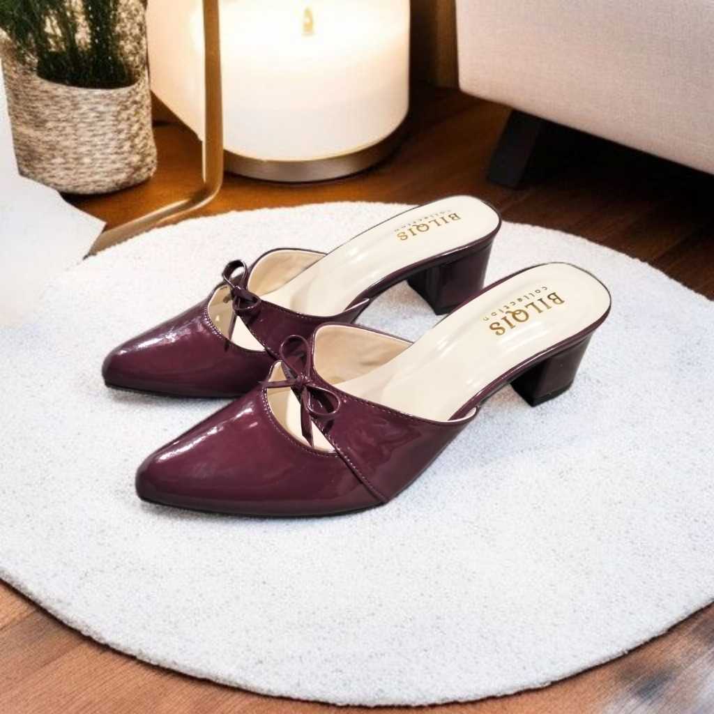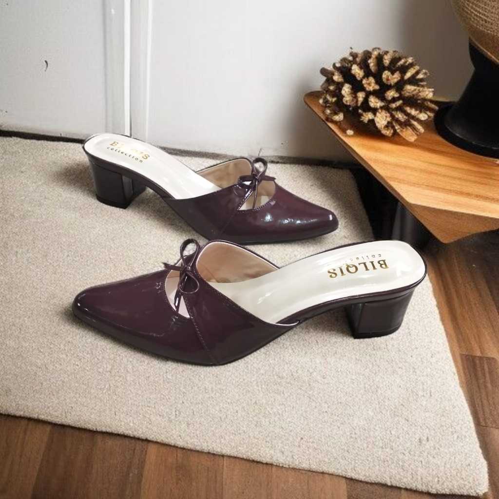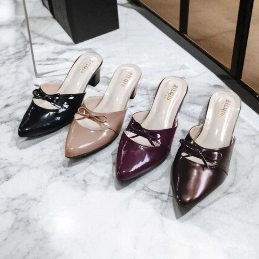Sandal heels wanita slop mules 5cm kekinian