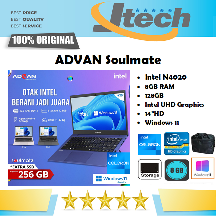 Laptop Advan Soulmate Intel N4020 8Gb 128Gb 14"Hd Win11