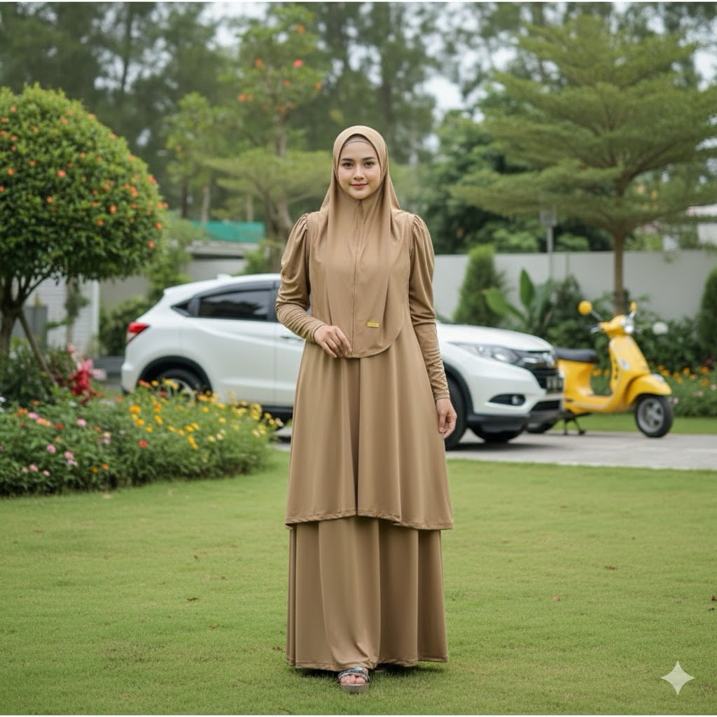 SET ROK MALAY BAHAN JERSEY SET HIJAB CIPUT Muslim atasan panjang wanita by Lila Fashion