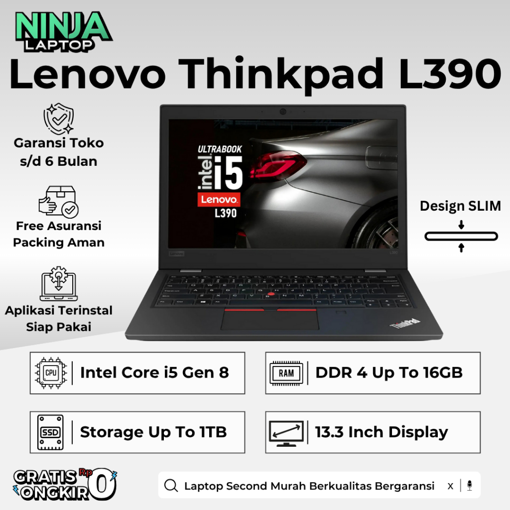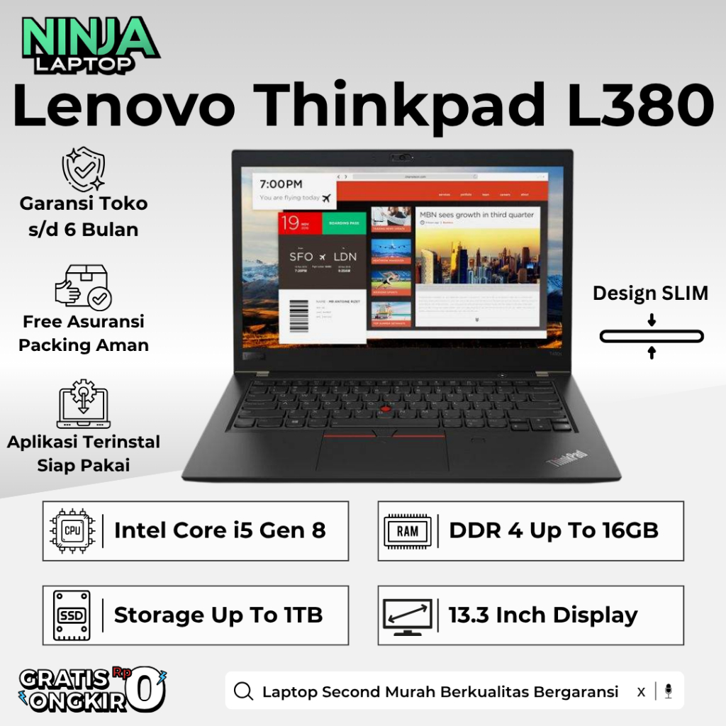 Laptop 13" Lenovo Thinkpad L390 L380 Core I7 Gen 8 Ram 16Gb Ssd 1Tb Second Original Bergaransi Slim