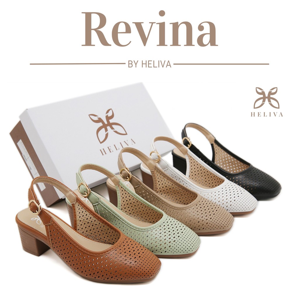 HELIVA REVINA Slingback Heels Round Toe Desain Laser Cut 5cm Sepatu Formal Wanita Nyaman HV7778