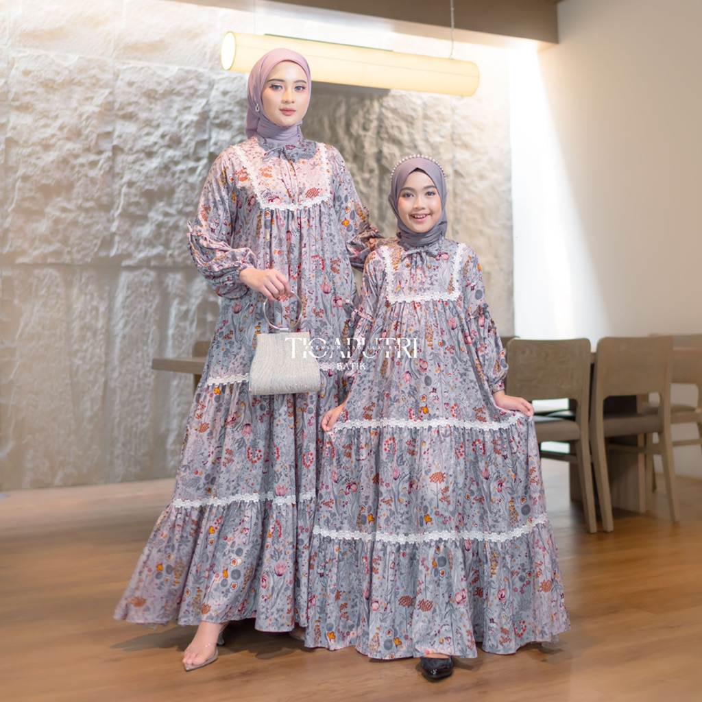 Hayvana Renda Dress Gamis Rempel Renda Dewasa dan Anak Gamis Susun Lengan Balon Pita Gamis Rayon Premium