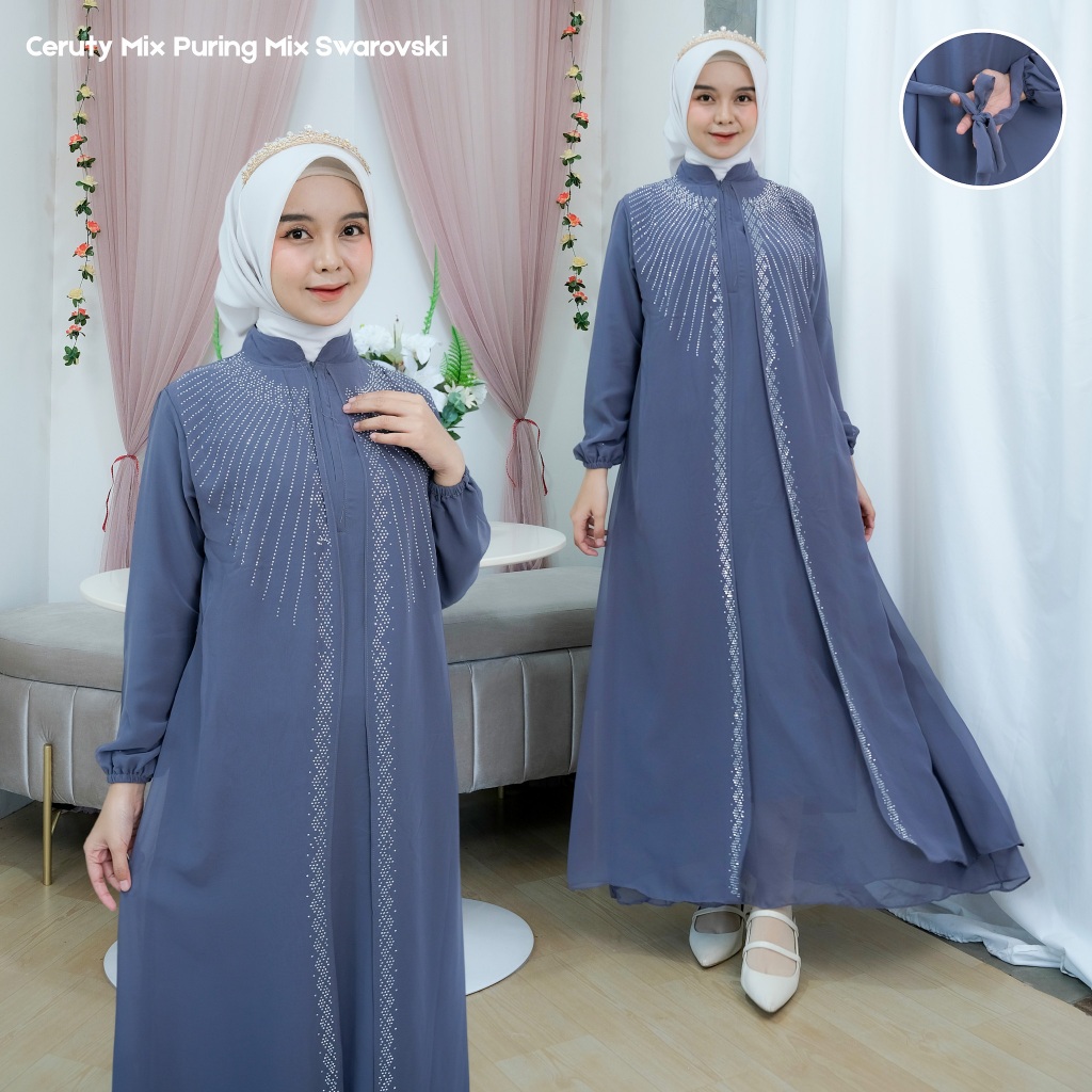 MC Gamis Terbaru Style Merak Bahan Ceruty Babydoll Fashion Wanita Muslim KondanganSwarowskyPengajianKerudungHijabSeragaman