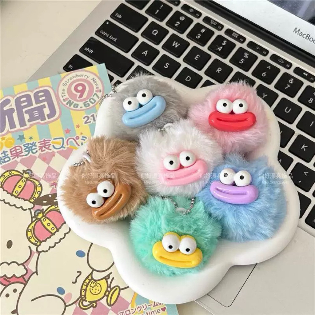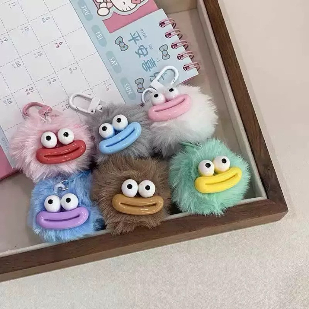 MINI Smiley Pompom Keychain / Gantungan Tas Gantungan Kunci Boneka Bulu / Bag Charm Lucu / Ganci Boneka Bulu / Ganci Mob