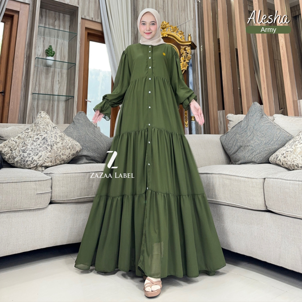 Zazaa Label Alesha Dress Premium Ceruty Babydoll Jumbo Formal Terlaris Terbaru Termurah Best Seller Gamis Wanita Kekinian Ready Stok