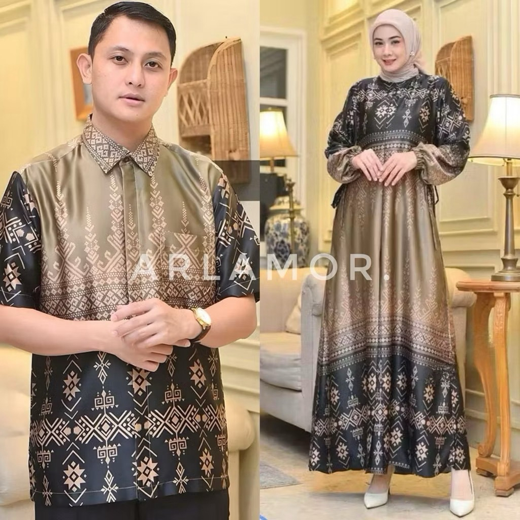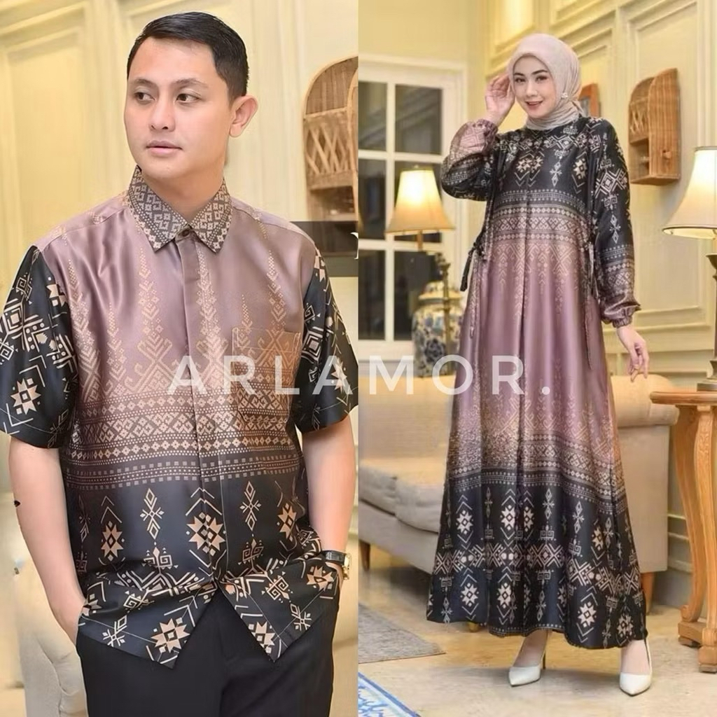 Gamis Couple Silk Motif Terbaru Elegan Mewah Premium Quality